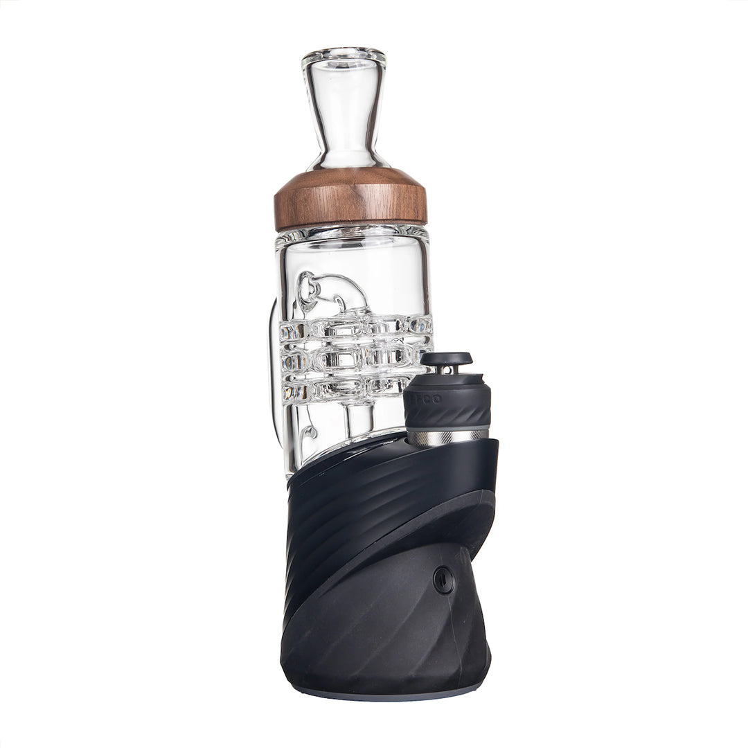 Elaborado en vidrio de borosilicato artesanal, el Halo ofrece durabilidad, resistencia al calor y una pureza de sabor inigualable. Su forma tipo jarra brinda un agarre cómodo y estable, mientras que el acento de nogal negro fresado agrega un toque sofisticado.